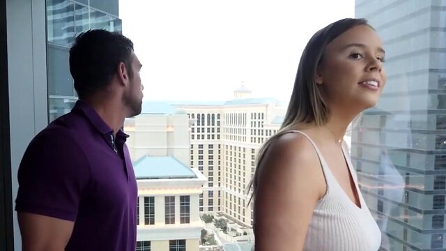 REALITYJUNKIES - Busty Brunette Hottie Wakes Up Man By Showing Him Her Tits
