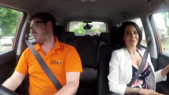 Fake Driving School Spunk covered pussy for busty British babe Alice Judge