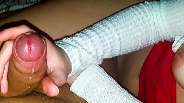HANDJOB! Big dick massage with cock ring & huge cumshot!
