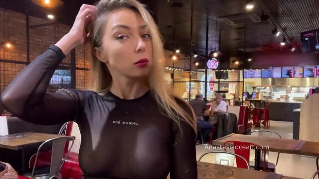 Anastasia Ocean Shows Her Breasts In A Shopping Center Cafe, Public, Natural Boobs