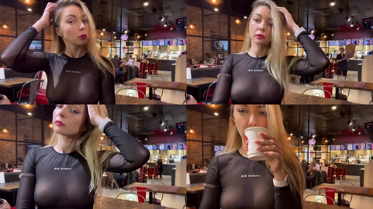 Anastasia Ocean Shows Her Breasts In A Shopping Center Cafe, Public, Natural Boobs