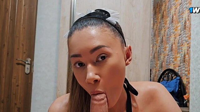 Bang Bang Bang! Housekeeper's ass from Asia bursting at the seams, cum erupts from her asshole