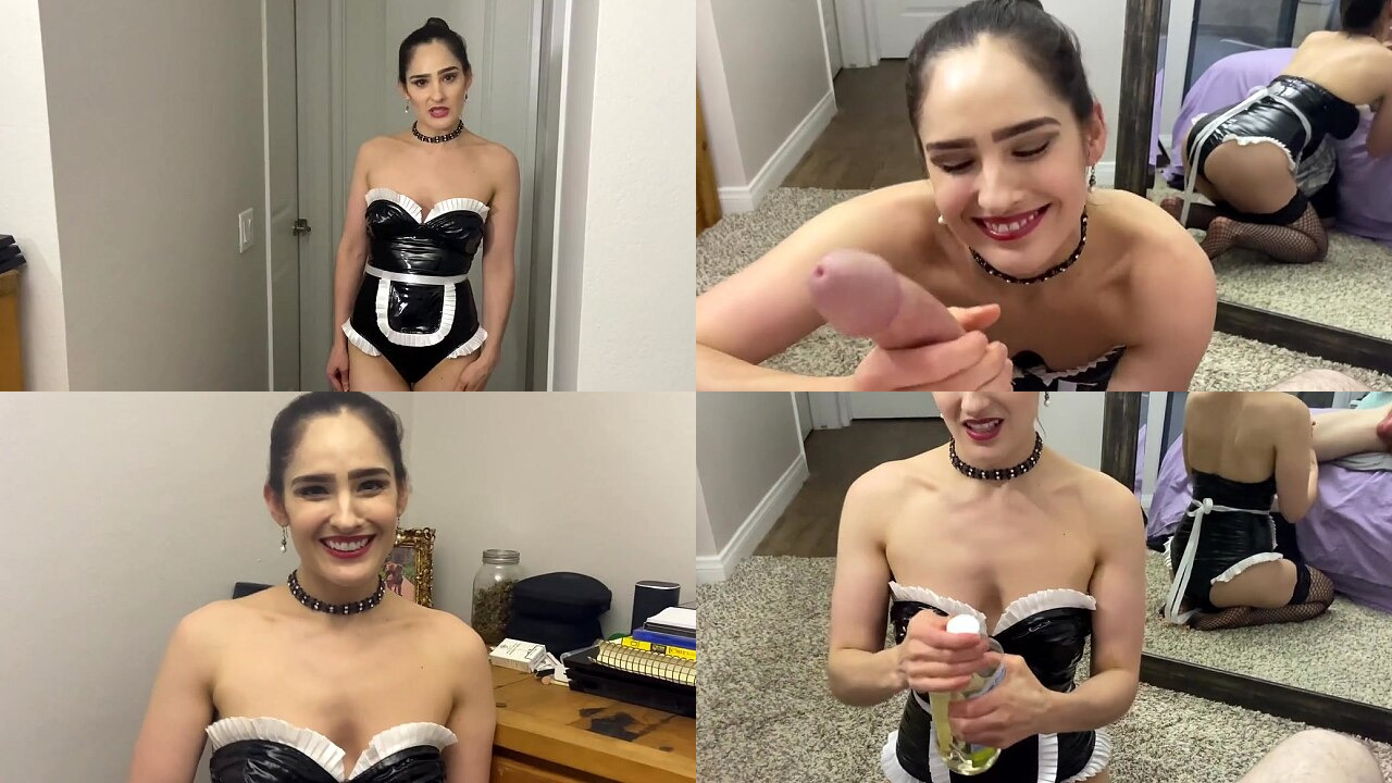 Naughty maid gives sexy BJ / HJ and finishes on face