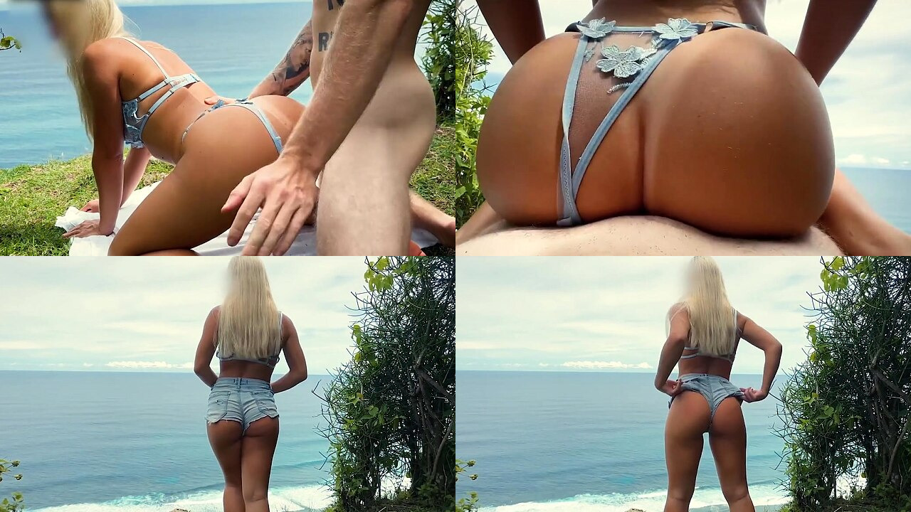 Romantic date turned into rough fuck: Covered her ass with sperm while looking at the ocean